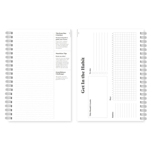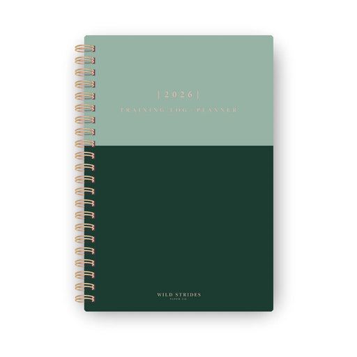 Wild Strides Paper Co.8th edition best-selling training log + planner, with new added features! Dual-tone green, matte hard cover with rose gold embossing and a rose g...